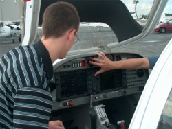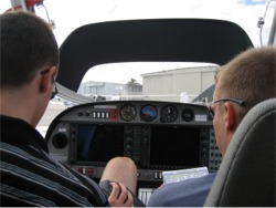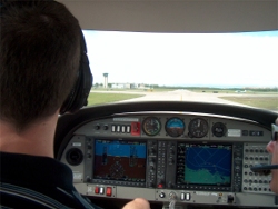 Die DA-40 wird nicht wie bei einer Cessna oder Piper mit einem Steuerhorn (Yoke) gesteuert, sondern mit einen Knüppel (Stick),